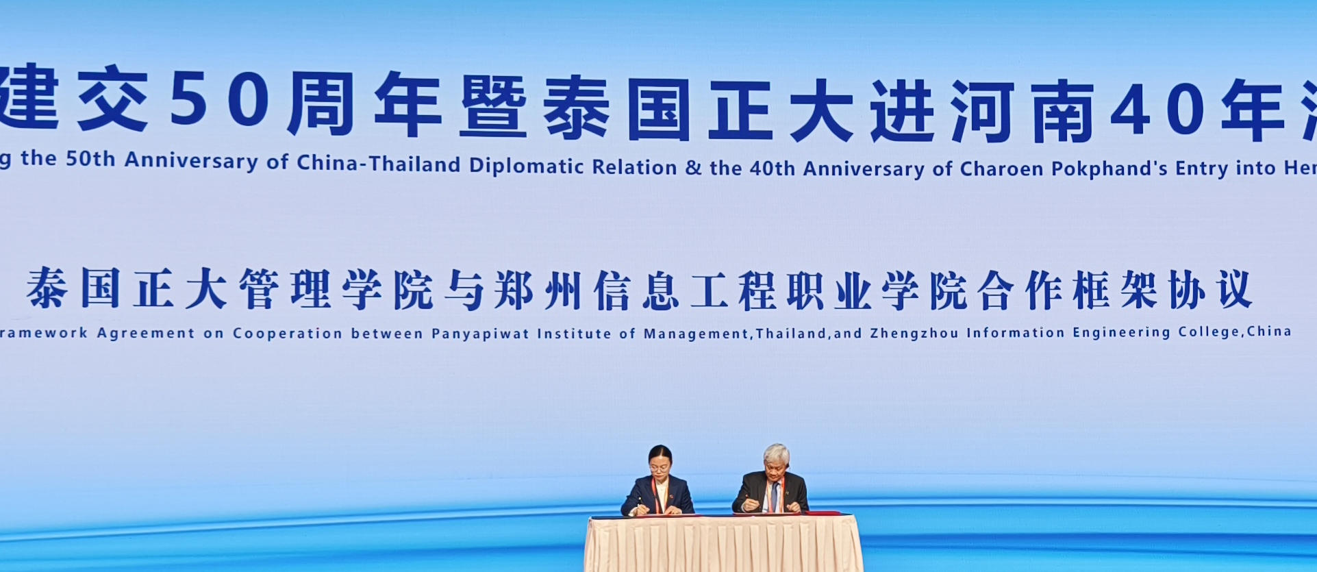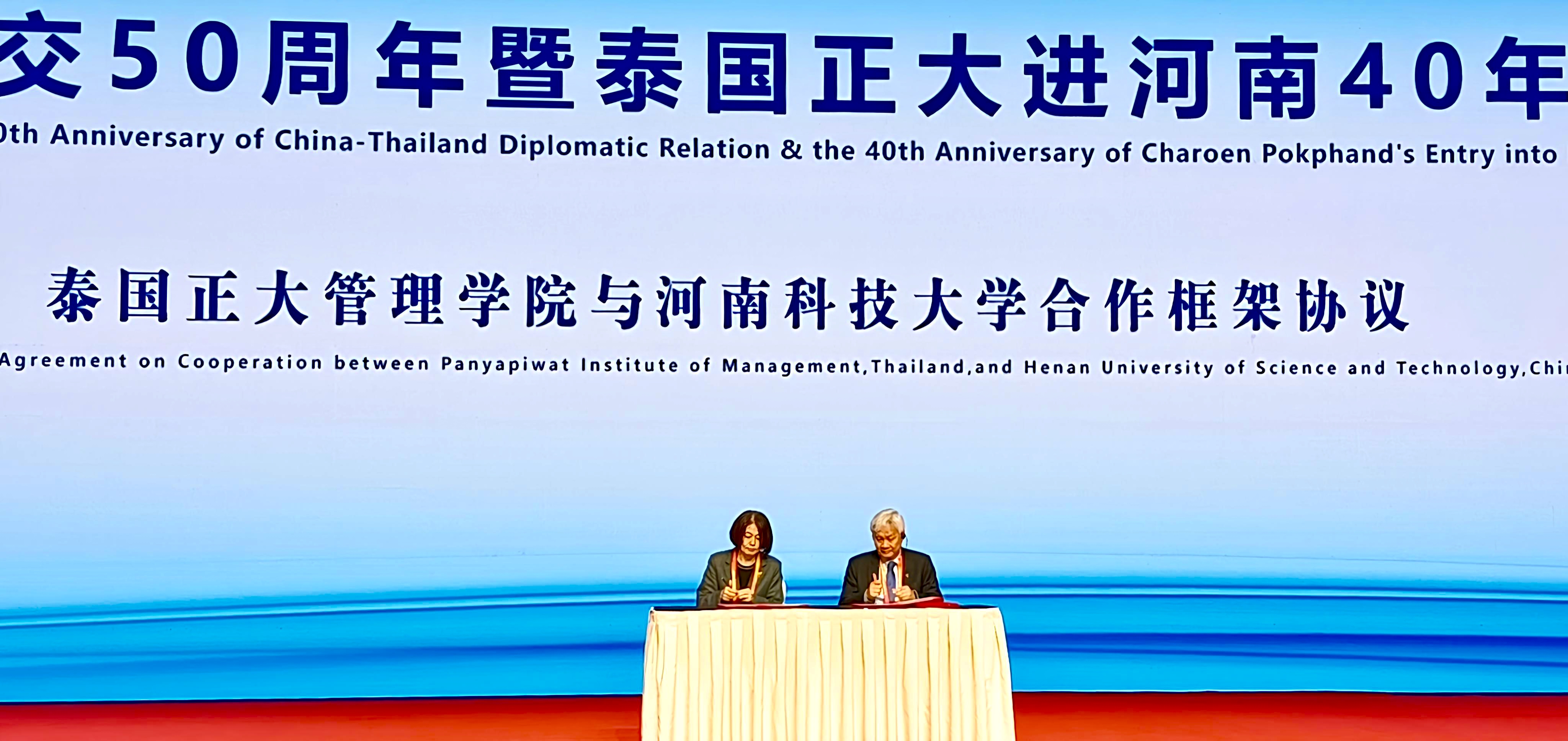 ▲泰國正大管理學院分別與河南科技大學、鄭州信息工程職業學院簽署合作框架協議。