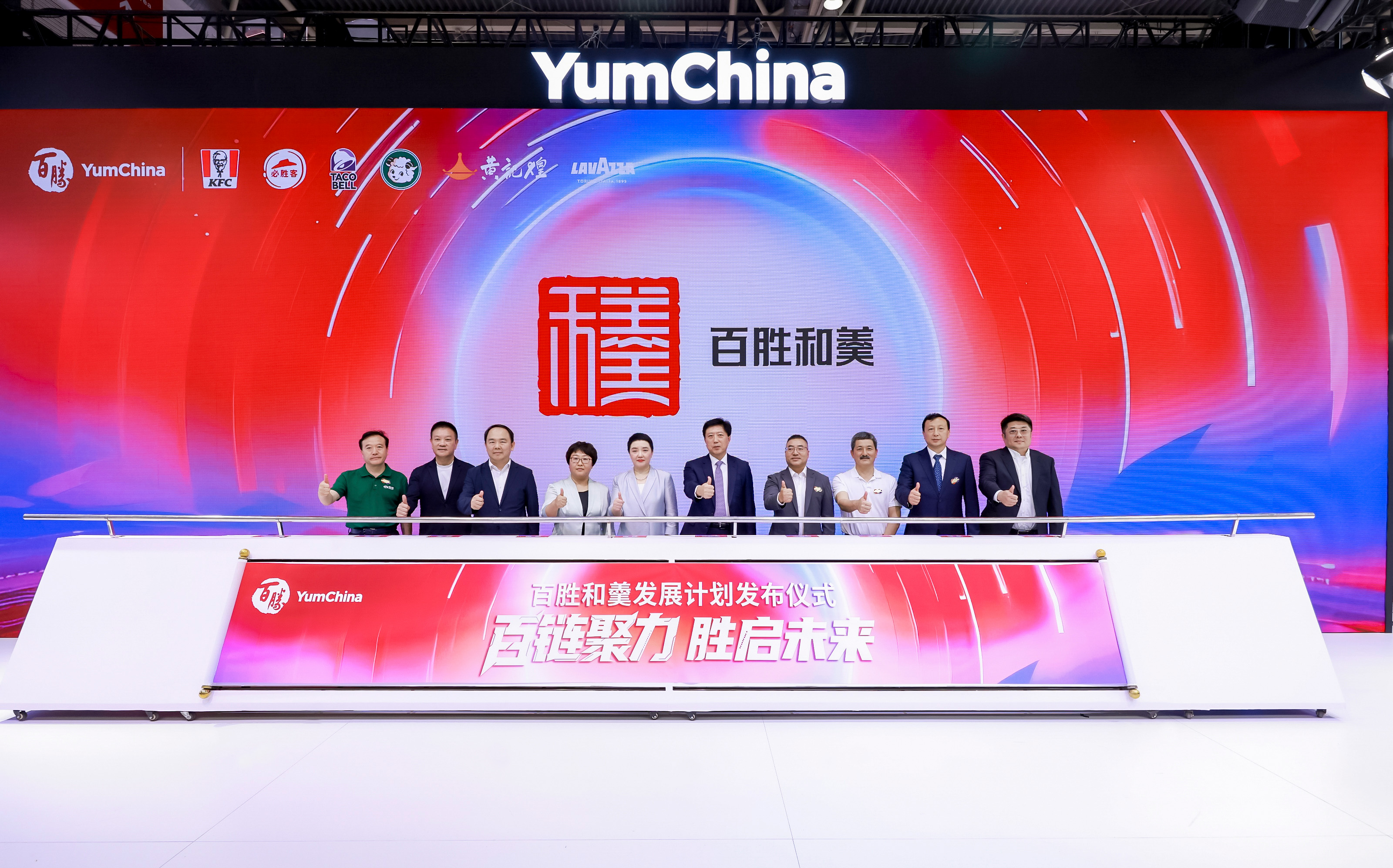 ▲冷松資(zi)深副(fu)董事長(右(you)二)出席百(bai)勝和羹發展計劃發布儀式。