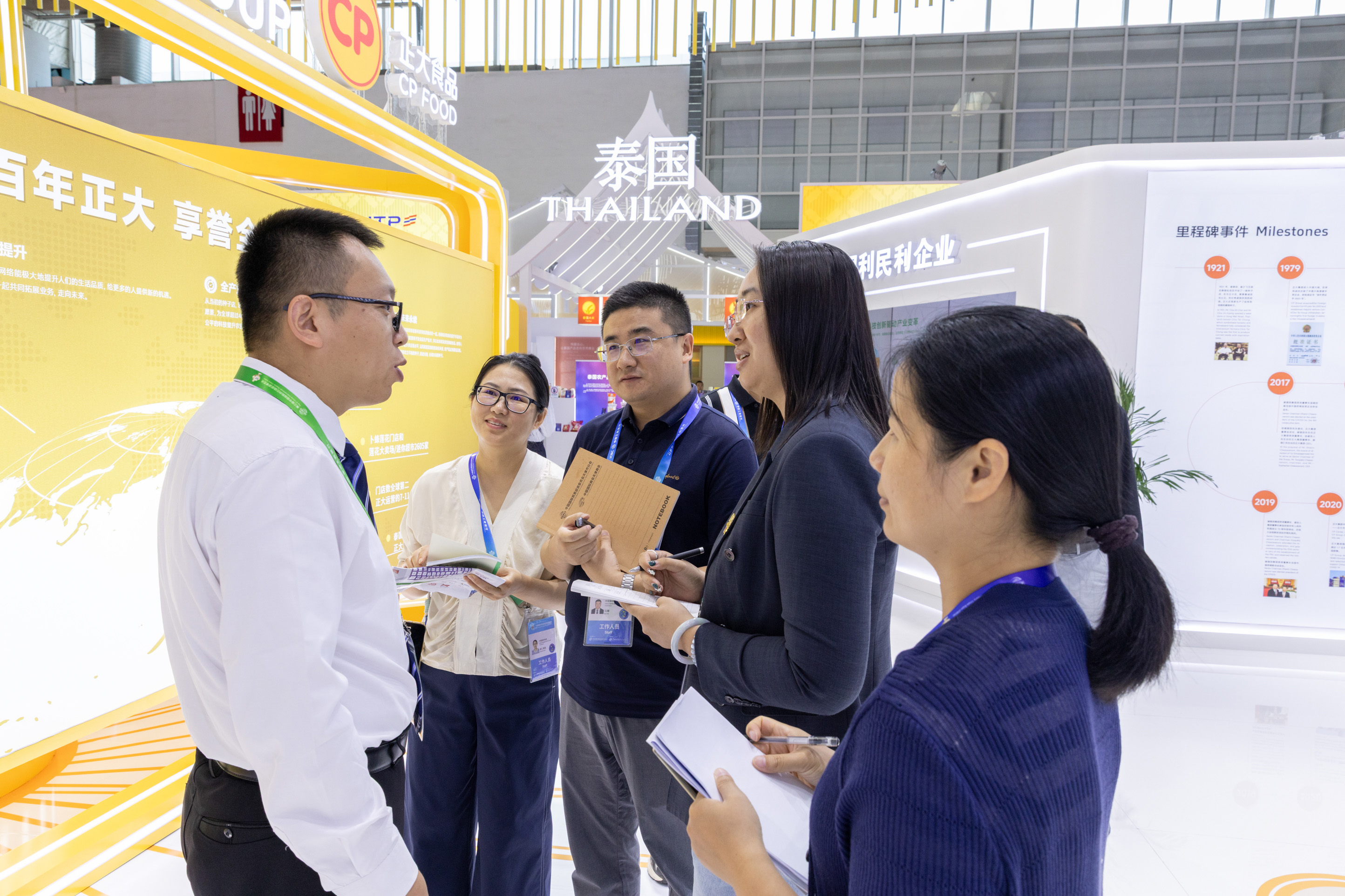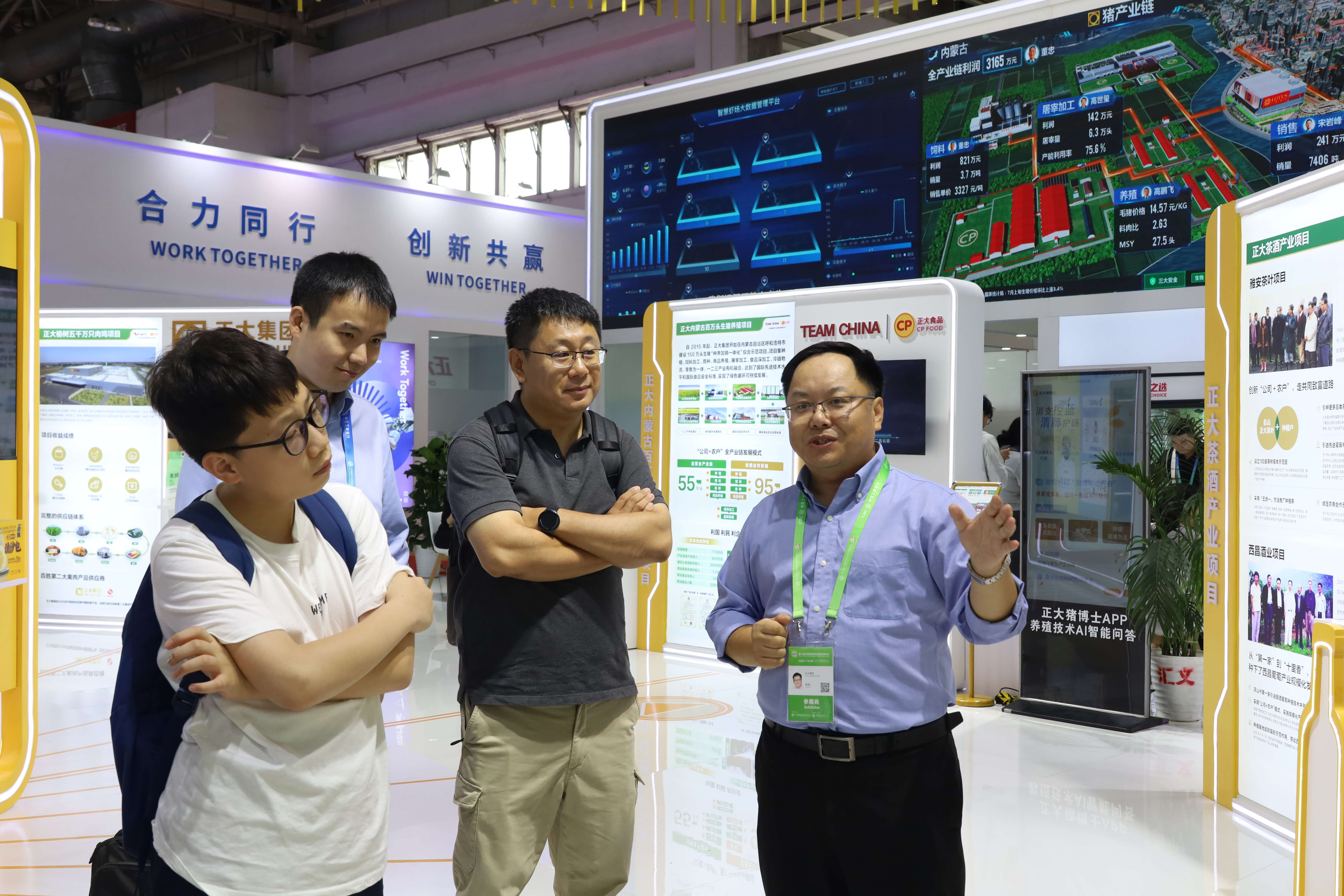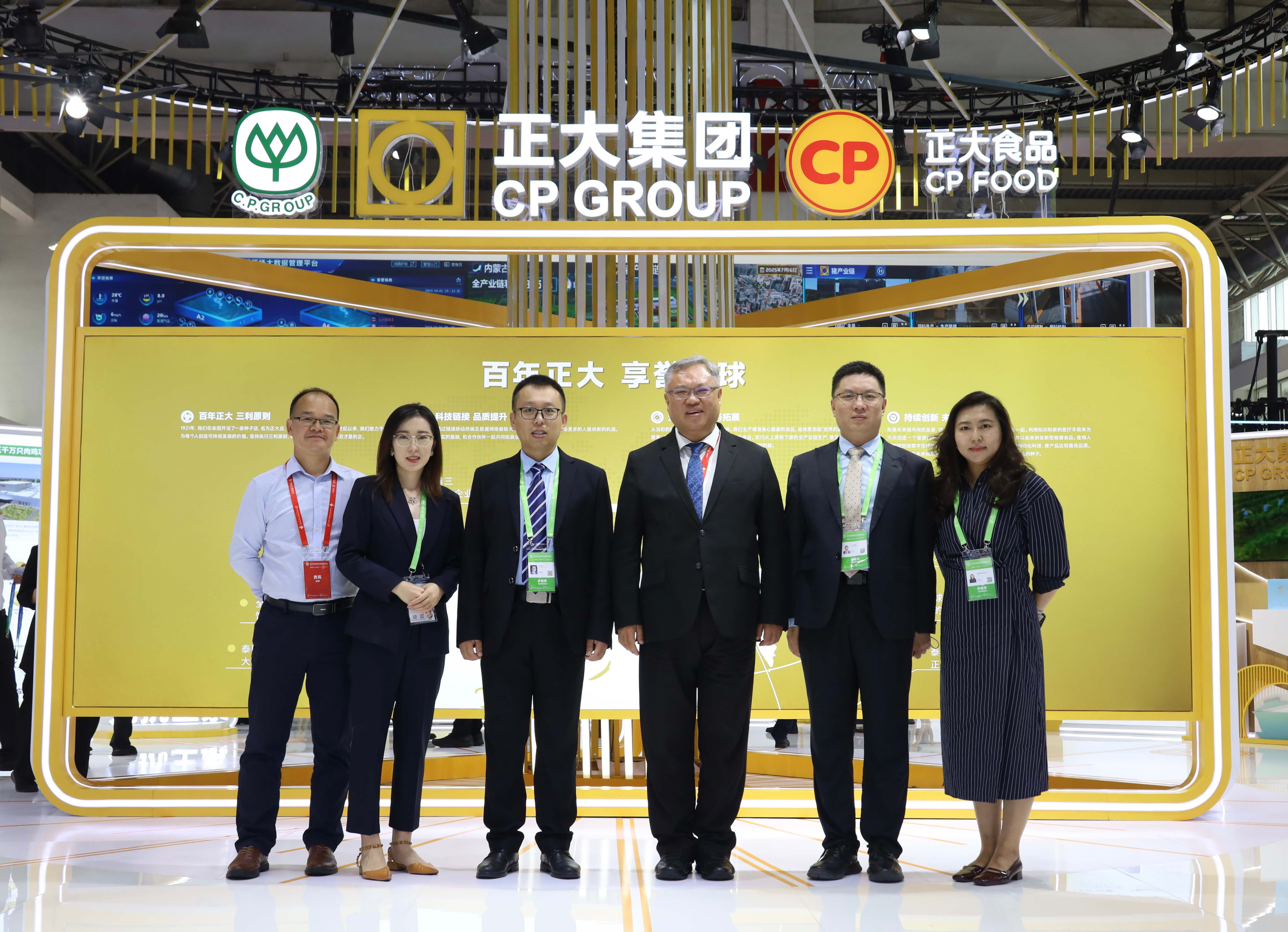 ▲正(zheng)大(da)集團(tuan)資深(shen)副(fu)董(dong)事(shi)長(chang)謝明欣(右二(er))在(zai)正(zheng)大(da)展館考(kao)察(cha)指導,正(zheng)大(da)集團(tuan)資深(shen)副(fu)總(zong)裁(cai)、中(zhong)國戰(zhan)略發展與合作總(zong)裁(cai)黃偉(wei)偉(wei)(右一(yi)),集團(tuan)農牧食品企業中(zhong)國區(qu)資深(shen)副(fu)董(dong)事(shi)長(chang)邢繼憲(左(zuo)二(er))、資深(shen)副(fu)董(dong)事(shi)長(chang)薛增(zeng)一(yi)(左(zuo)一(yi))陪同考(kao)察(cha)。