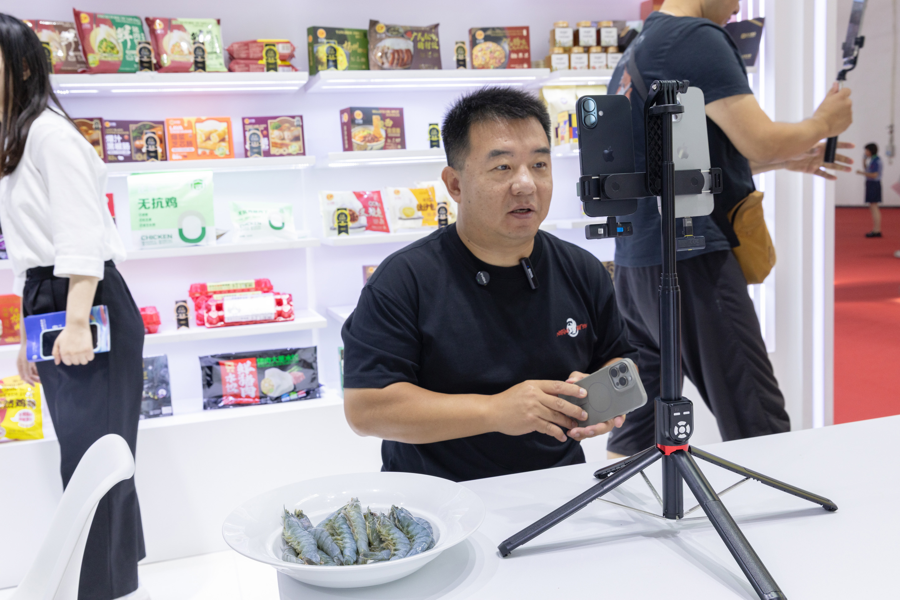 ▲多名(ming)網(wang)紅主播在正大展(zhan)館直播。
